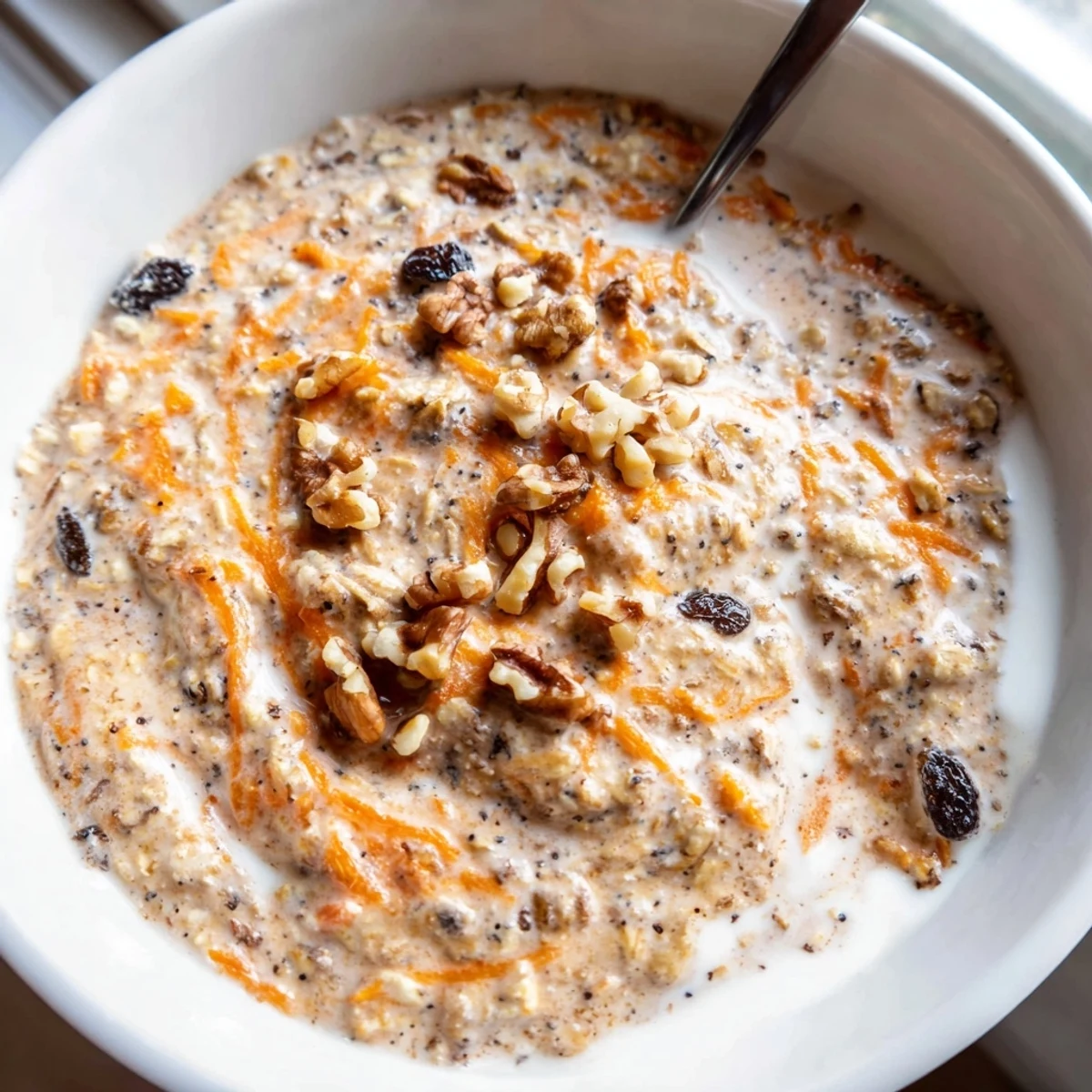 Transform your morning routine with these creamy overnight oats inspired by classic carrot cake flavors. The combination of grated carrots, warm cinnamon, nutmeg, and sweet raisins creates a breakfast that tastes like dessert while delivering wholesome nutrients.