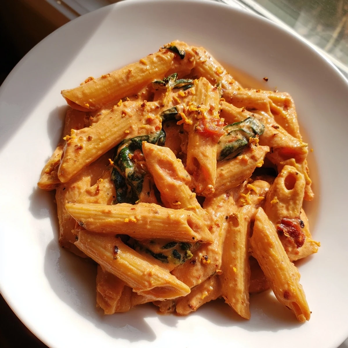 This hearty pasta brings together the intense, sweet-tangy flavor of sun-dried tomatoes with a luxurious cashew-based cream sauce. The blend creates a velvety texture that coats every strand perfectly, while fresh spinach adds color and nutrients. Ready in just 30 minutes, it's ideal for weeknight dinners when you want something deeply satisfying but still wholesome.
