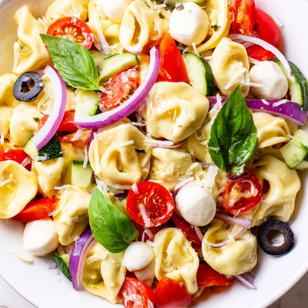 This refreshing tortellini salad combines tender cheese-filled pasta with crisp cherry tomatoes, cucumber, bell pepper, red onion, and black olives. Fresh mozzarella balls and Parmesan add rich creaminess, while a homemade zesty Italian dressing with olive oil, red wine vinegar, and Dijon mustard ties everything together. Ready in just 22 minutes, this versatile Italian-American dish works beautifully for potlucks, picnics, or light weeknight dinners.